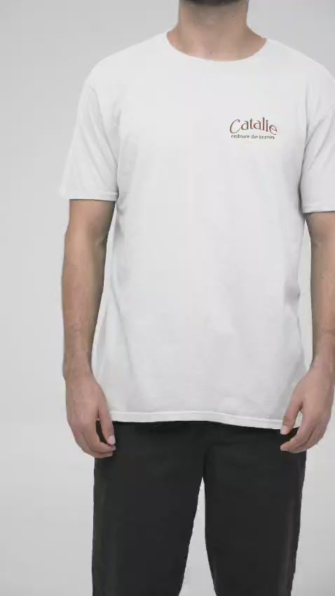 Catalie Classic Damen & Herren weißes T-Shirt mit überschnittenen Schultern